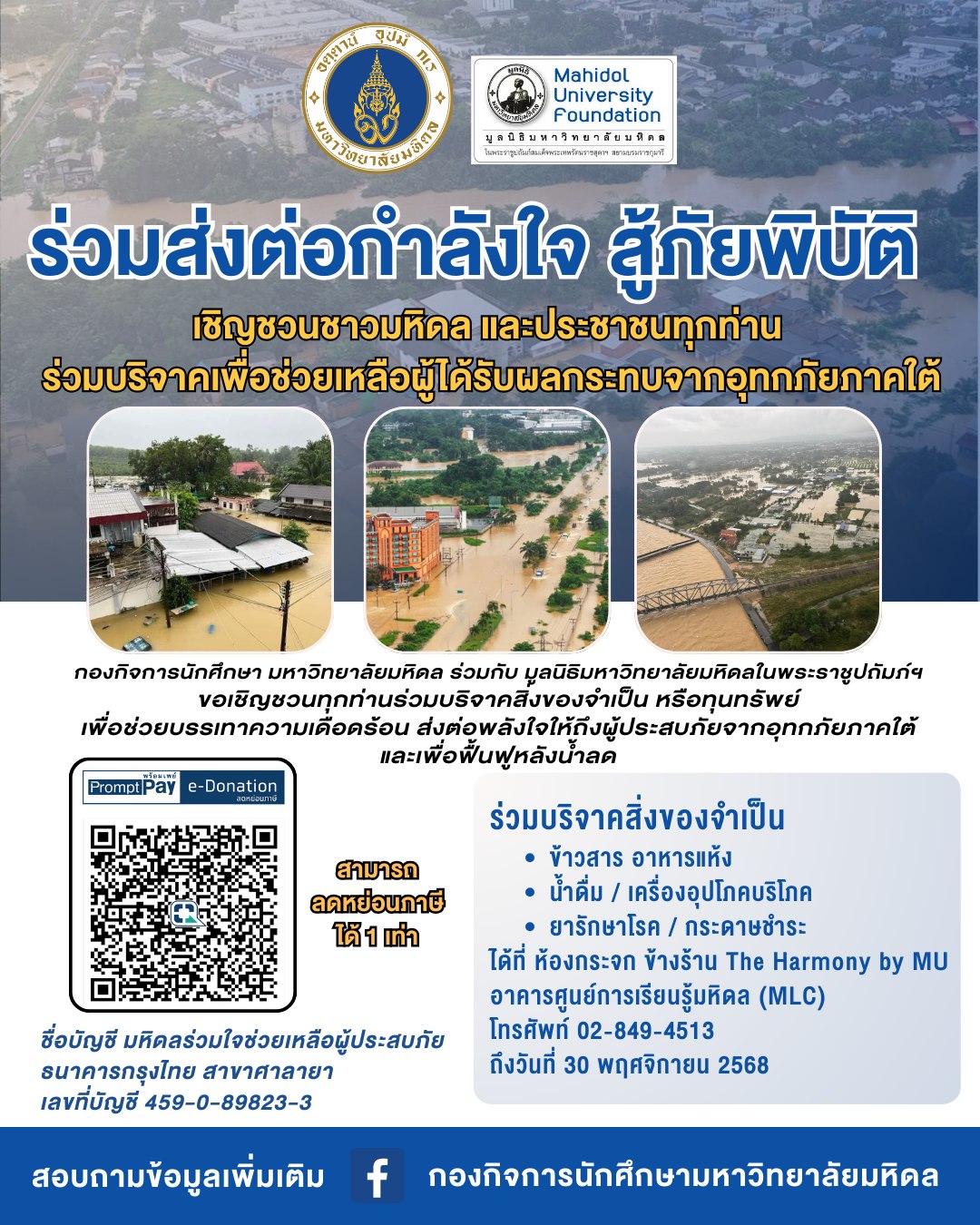 💙 มหิดลร่วมใจ ช่วยเหลือผู้ประสบอุทกภัยภาคใต้