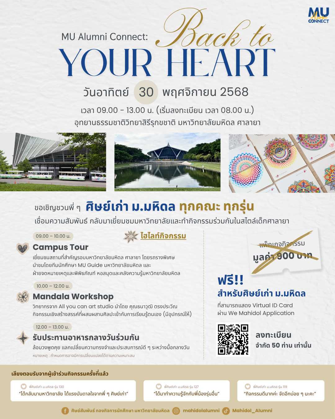 มหาวิทยาลัยมหิดลมีนโยบายสร้างเสริมความผูกพันและรวมพลังศิษย์เก่าของมหาวิทยาลัยมหิดล